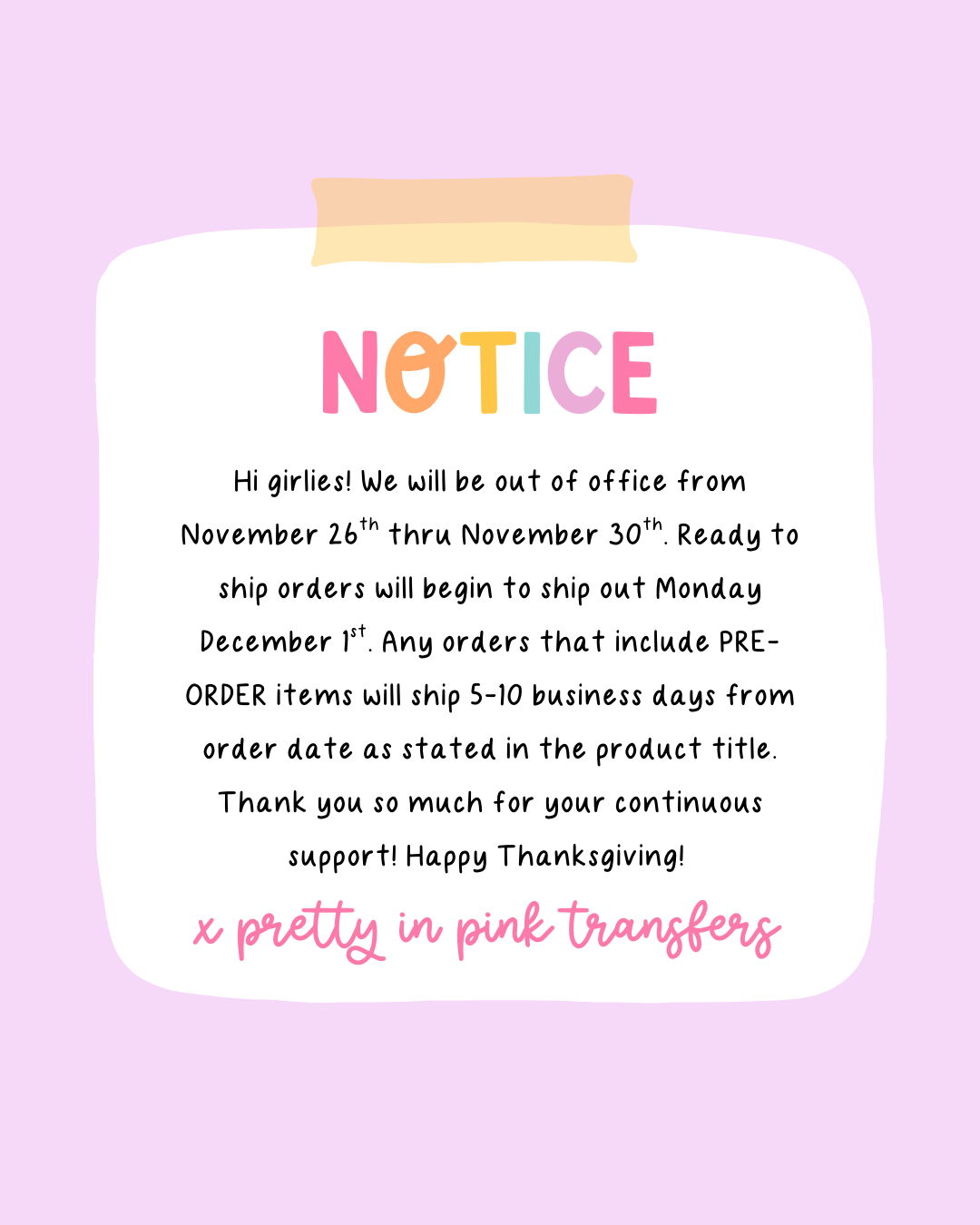 CURRENT TURN AROUND TIME FOR READY TO SHIP ITEMS IS 1 BUSINESS DAY